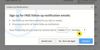 Salesgenie now features email follow-up notifications sent to you on a daily or weekly basis to provide you with reminders about your leads.