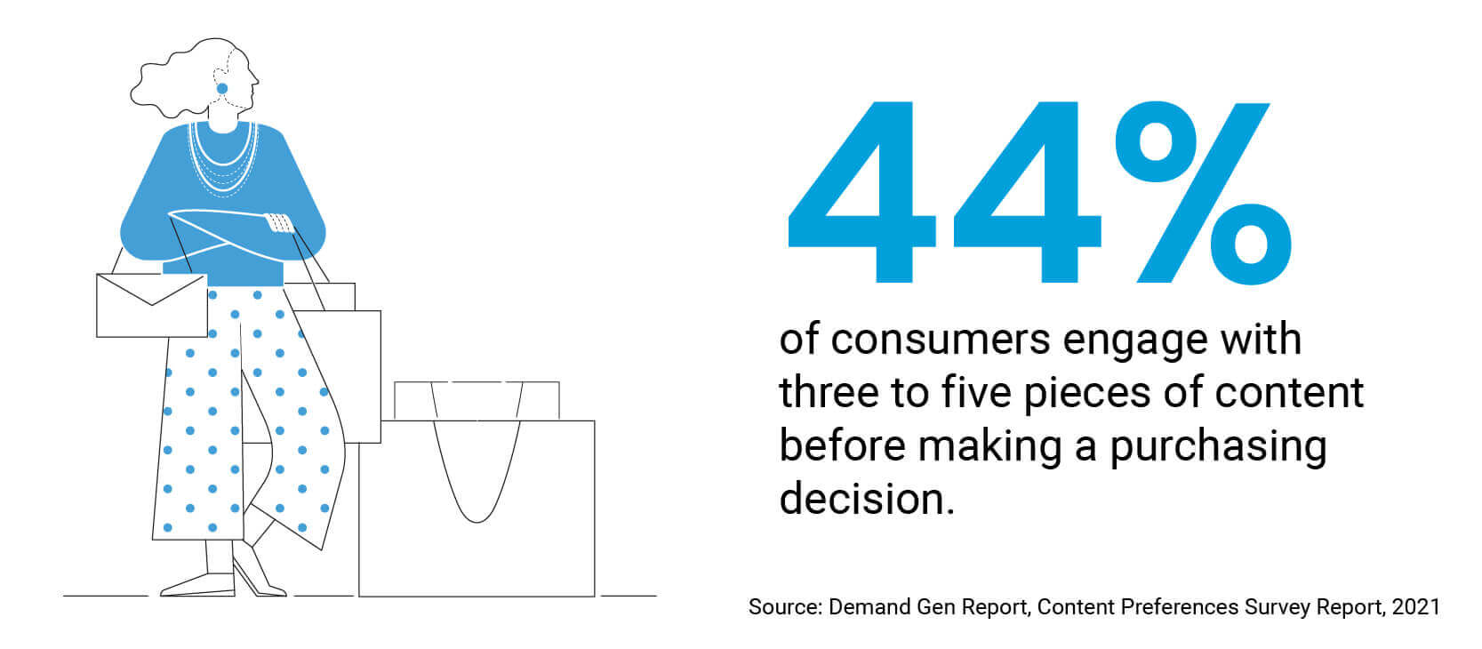 - Publishing original blog content boosts your credibility, as 44% of consumers engage with three to five pieces of content before making a purchasing decision. (Source: Demand Gen Report, Content Preferences Survey Report, 2021)