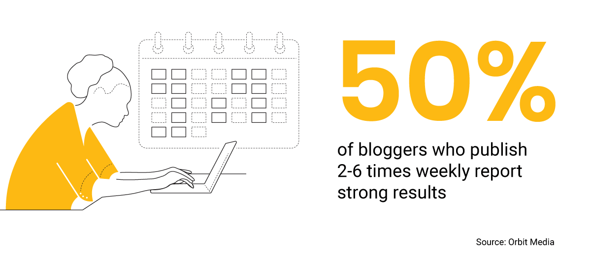 Monthly blogging is more popular, likely because of the time and talent investment, but the data suggests bi-weekly is the minimum for content performance.(Source: Orbit Media, 2024 Blogging Statistics: 11 years of Trends and Insights from 1000+ Bloggers)