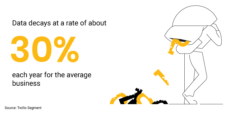 - Twilio Segment says that data decays at a rate of about 30% each year for the average business.