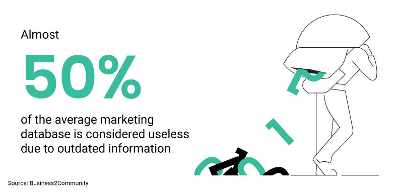 - Almost 50% of the average marketing database is considered useless due to outdated information according to Business2Community.