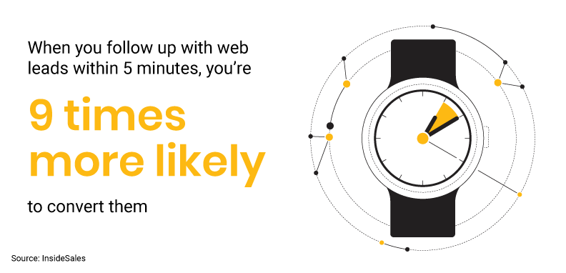 - InsideSales shares that when you follow up with web leads within 5 minutes, you’re 9 times more likely to convert them.