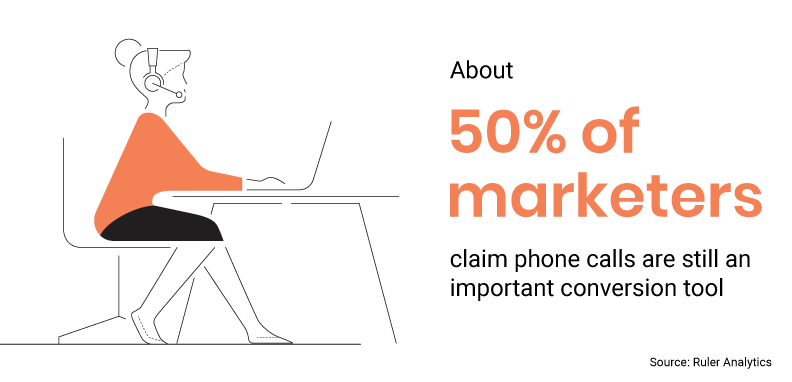 - About 50% of marketers claim phone calls are still an important conversion tool according to Ruler Analytics.