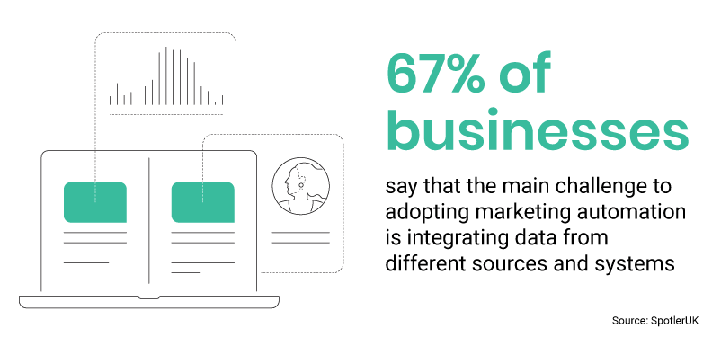 - SpotlerUK shares that for 67% of businesses, the main challenge to adopting marketing automation is integrating data from different sources and systems.