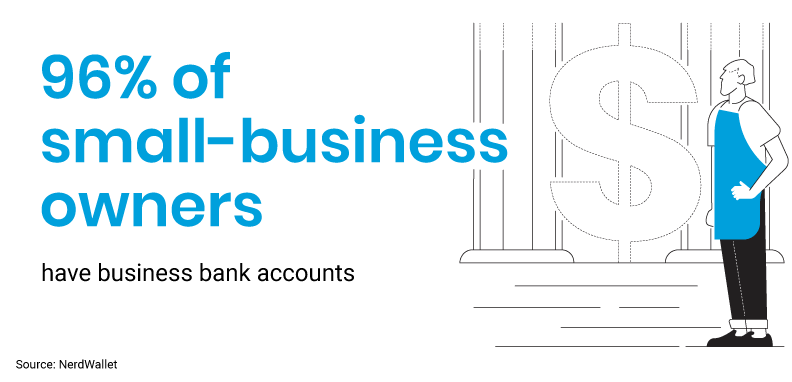 - A NerdWallet survey found that 96% of small-business owners have business bank accounts.