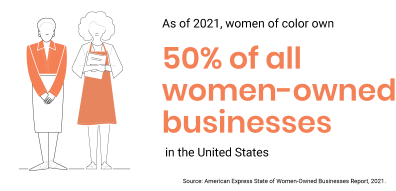 - As of 2021, women of color own 50% of all women-owned businesses in the United States according to the American Express State of Women-Owned Businesses Report, 2021.